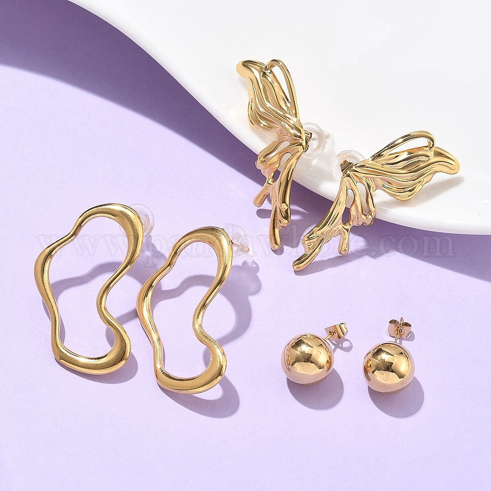 304 из нержавеющей стали серьги, реальный 18 k позолоченный