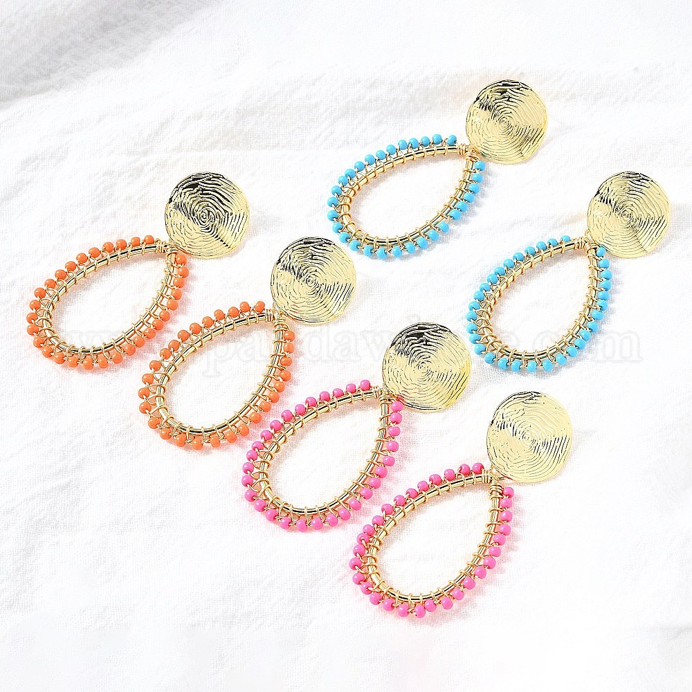 • Оранжевый Серьги-гвоздики из латуни в виде каплевидной формы с подвесками, со стеклом, без свинца и без кадмия, стойки покрытие, долговечный, оранжевые, 52.5x24.5 мм