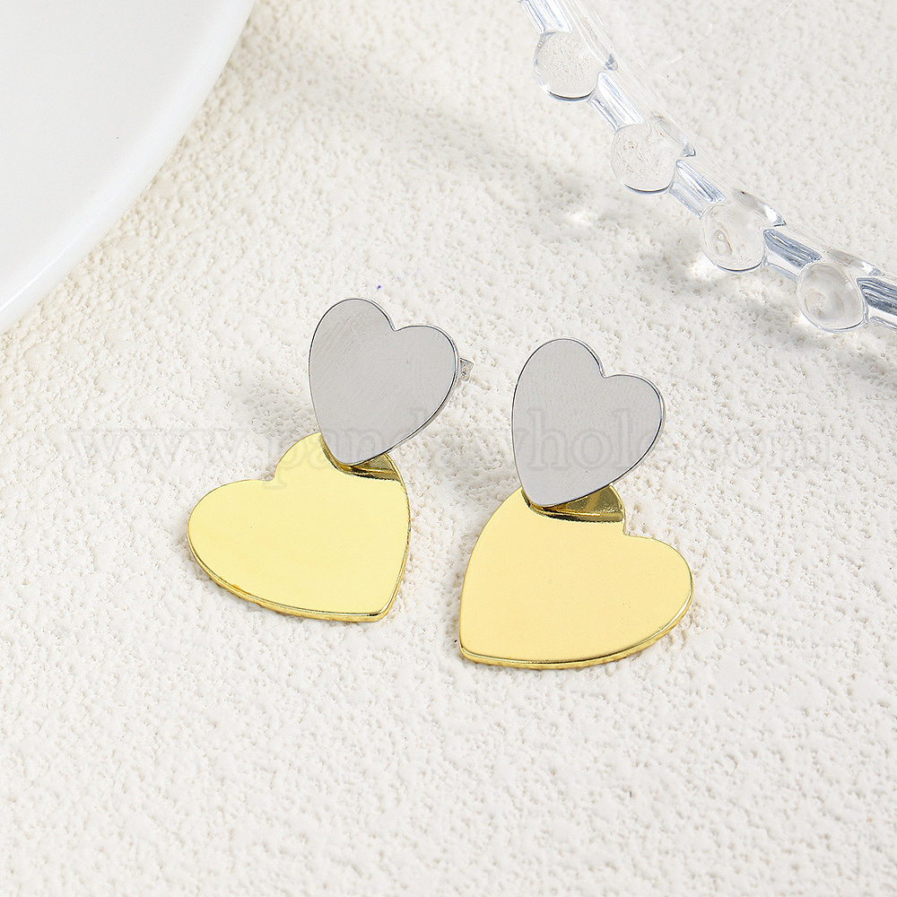 • Платиновый & Золотой Латунные качают серьги, двухцветное сердце, платиной и золотом, 30x21 мм