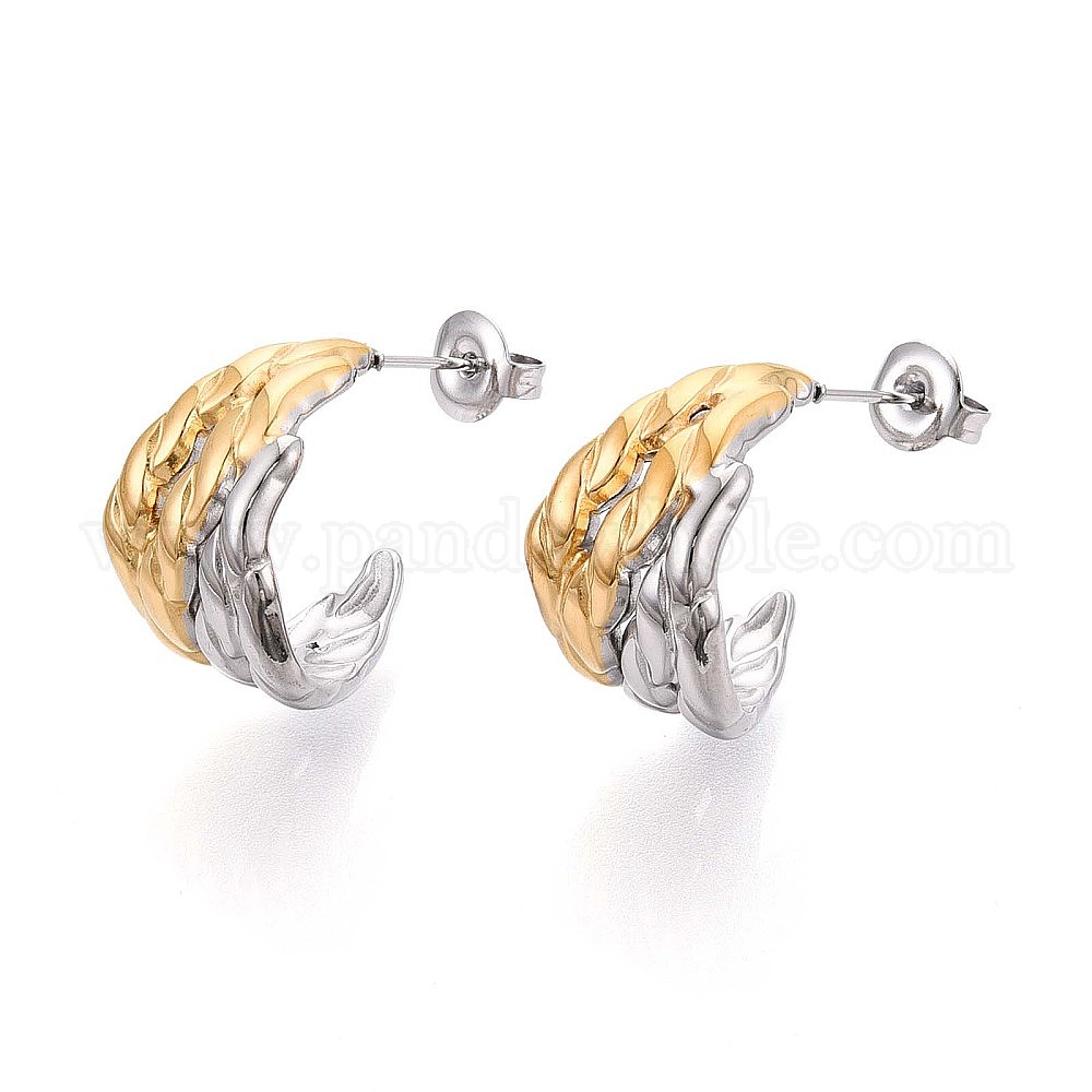 304 двухцветные серьги-гвоздики в форме буквы С из нержавеющей стали, ионное покрытие (ip) (033QRN)