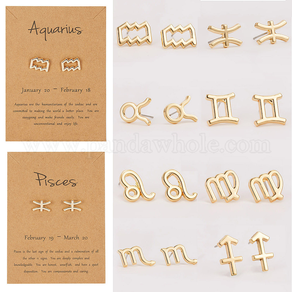 • Водолей Серьги сплава, золотые, Водолей, 12x8 мм