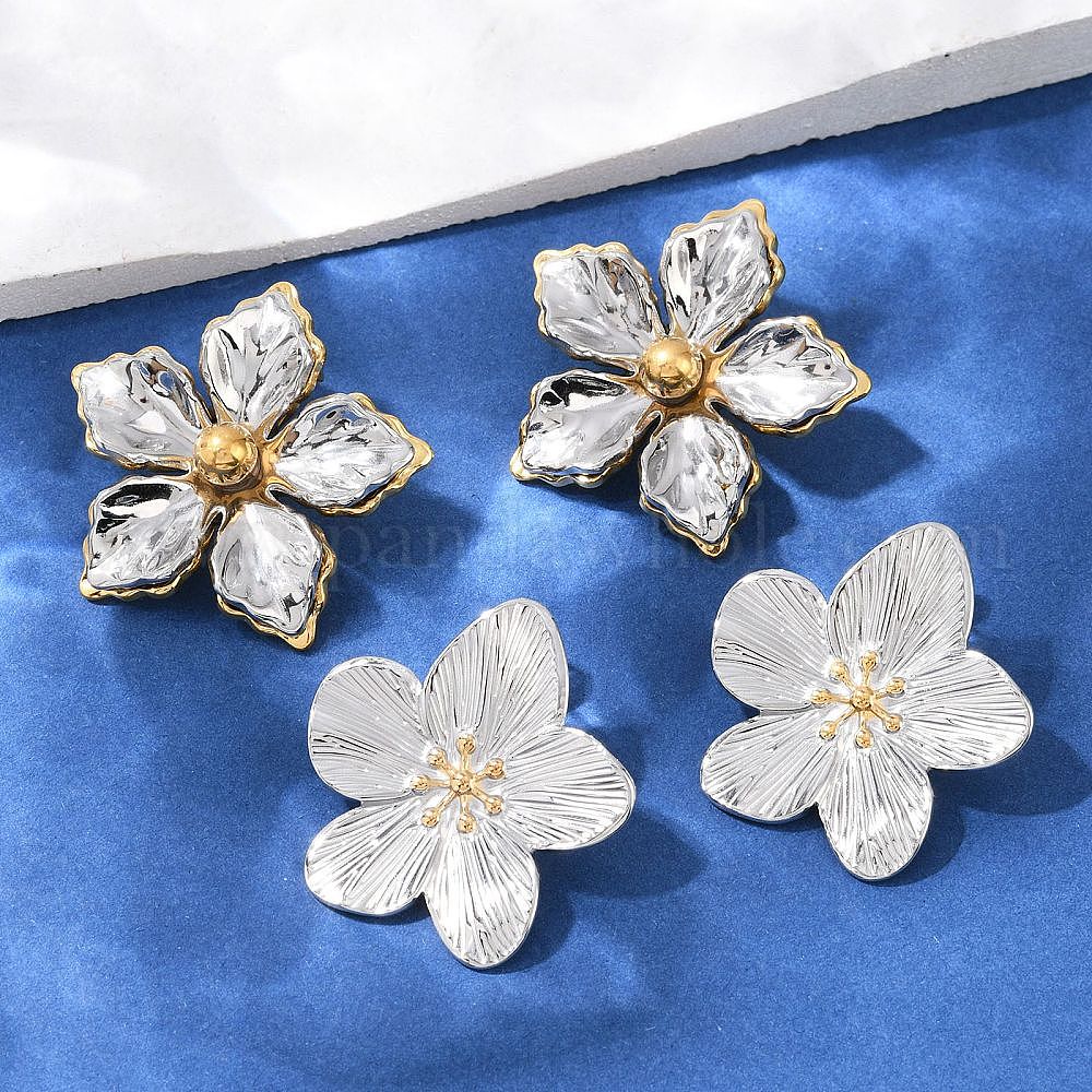 • Золотой & Цвет Нержавеющей Стали 304 из нержавеющей стали серьги, двухцветный цветок, золотые и нержавеющая сталь цвет, 34x35.5 мм