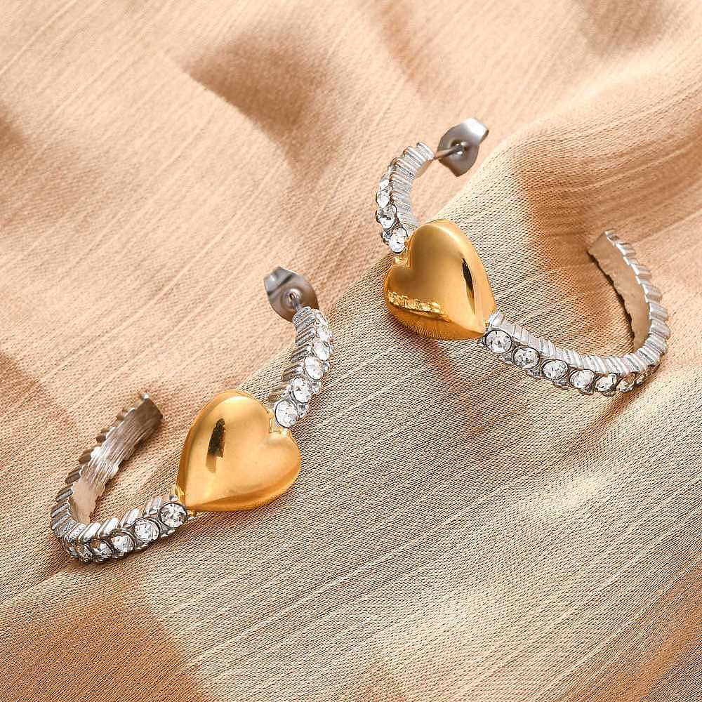 304 серьги-гвоздики в форме сердца из нержавеющей стали со стразами (033X5K)