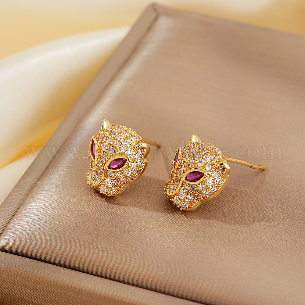 Модные латунные серьги-гвоздики с леопардовым принтом из кубического циркония