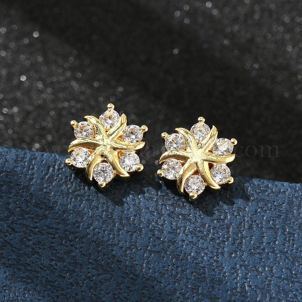 Серьги-гвоздики из прозрачного кубического циркония с цветочным узором из латуни и микропаве, без кадмия и без свинца, стойки покрытие, долговечный