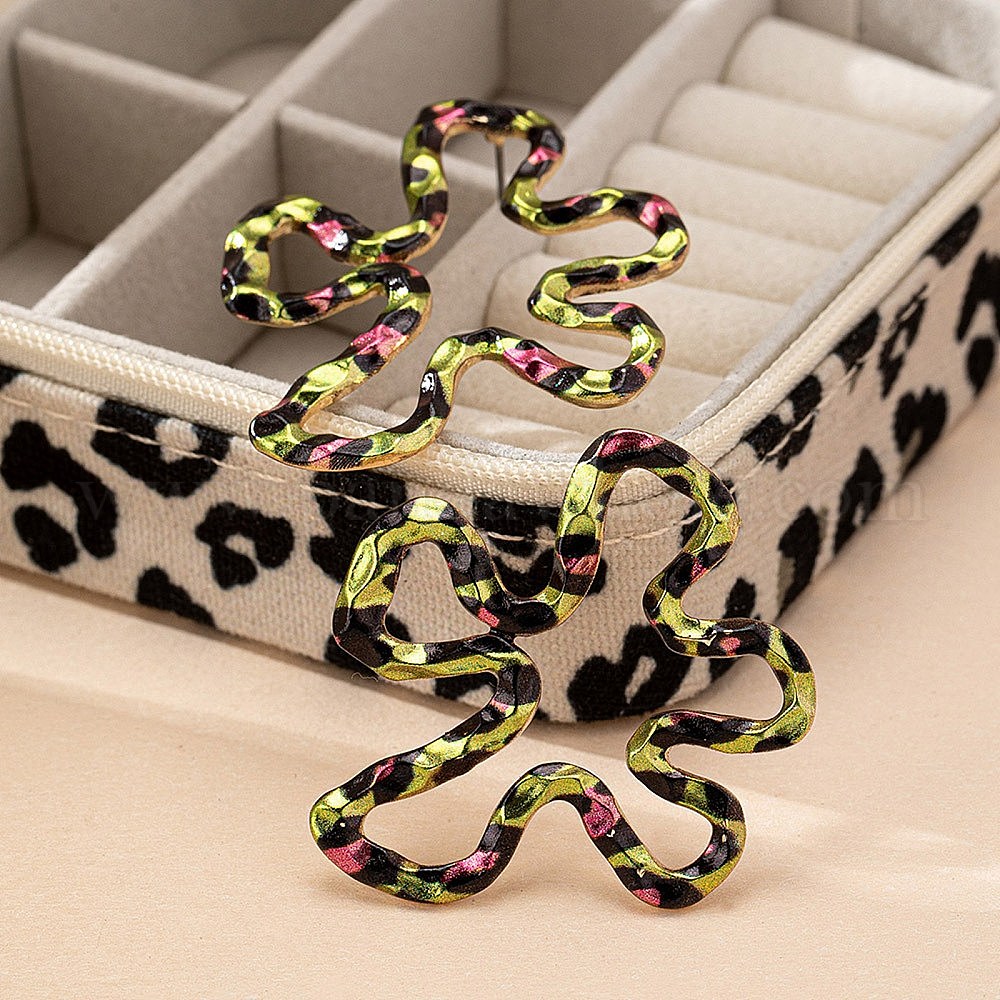 Серьги-гвоздики из сплава с цветком и леопардовым принтом
