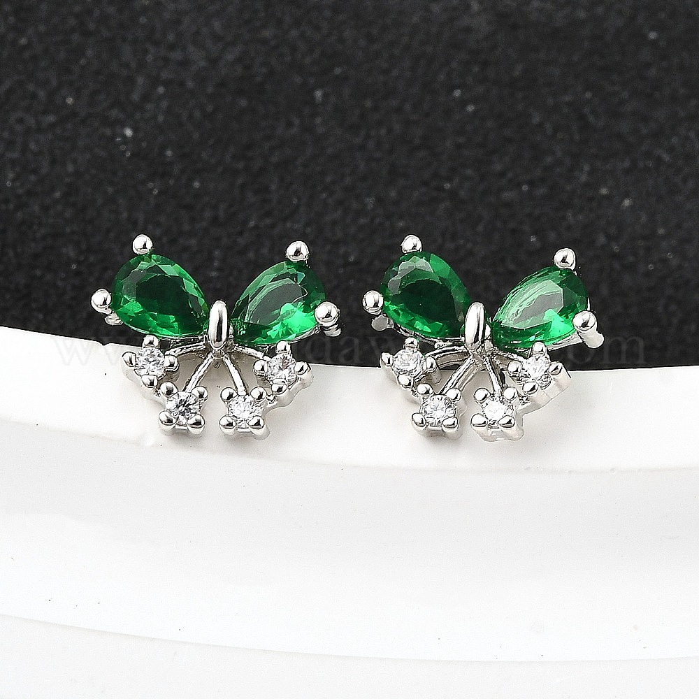 • Платина Латунные микро проложить серьги стержня кубического циркония, бантом, платина, 7.5x9.5 мм
