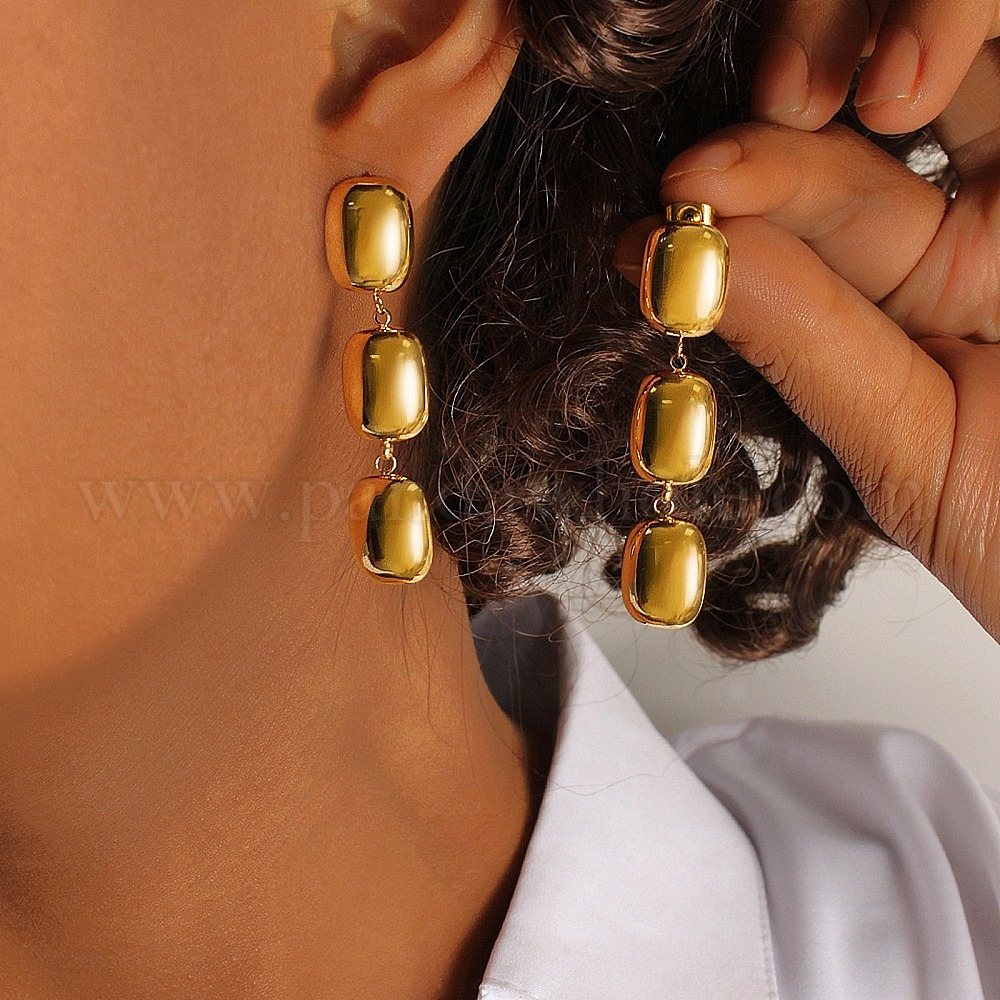 • Настоящее золото 18K 304 серьги из нержавеющей стали из нержавеющей стали, овальные, реальный 18 k позолоченный, 54x11.5 мм