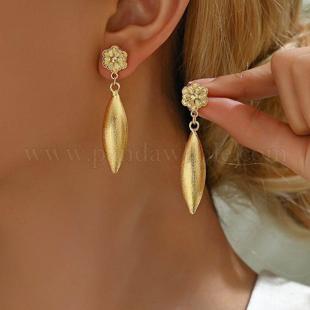 Изысканные серьги-гвоздики в форме капли с цветком из цинкового сплава