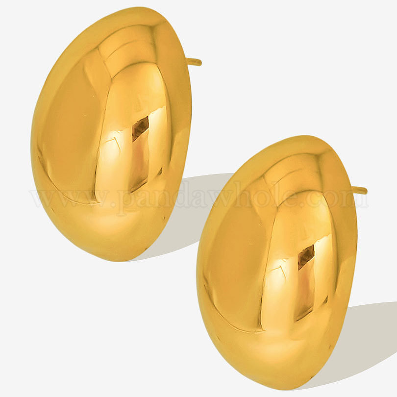 • Золотой Элегантные 304 овальные серьги-гвоздики из нержавеющей стали, золотые, 25x18 мм