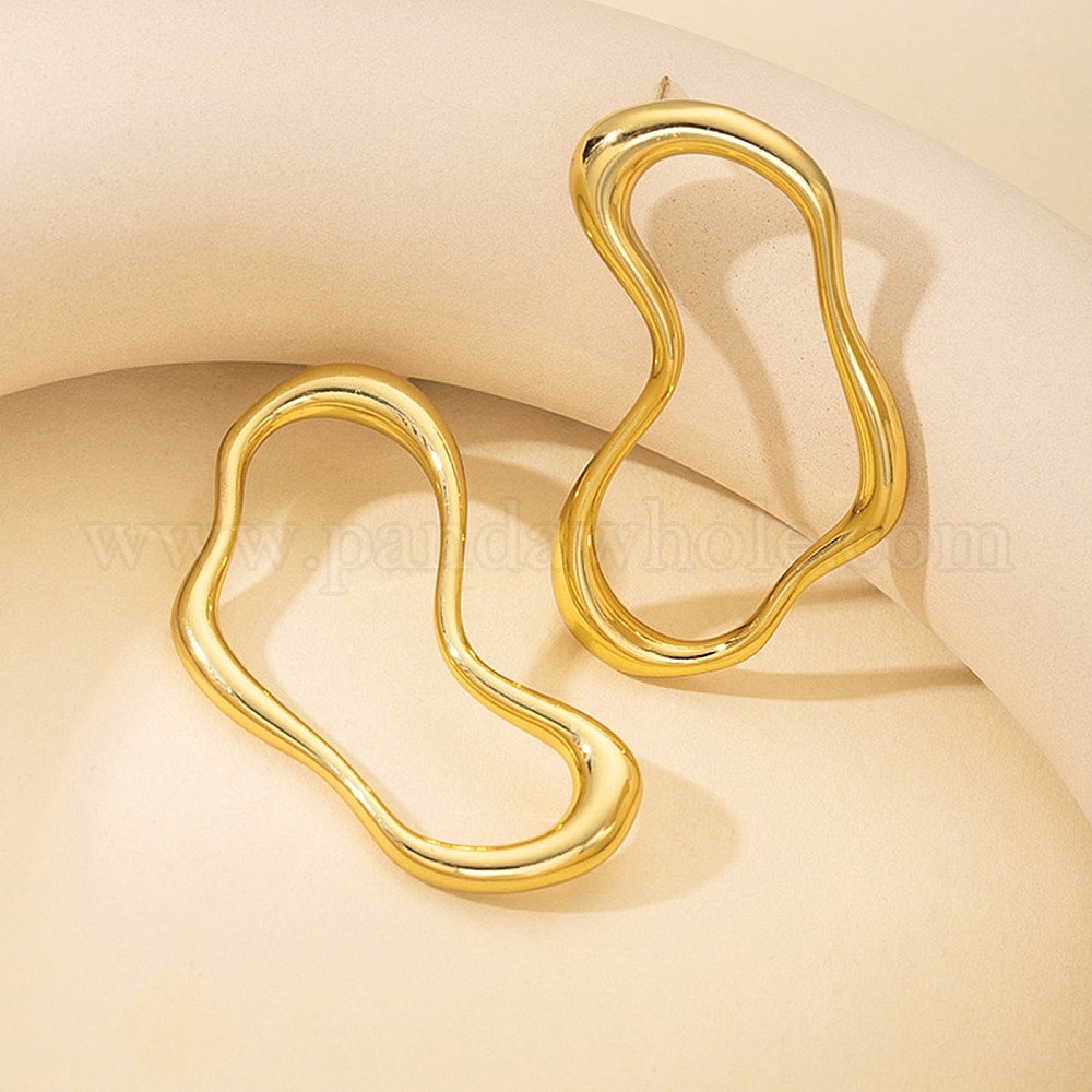 • Золотой 304 серьги-гвоздики из нержавеющей стали, золотые, 40x27.5 мм