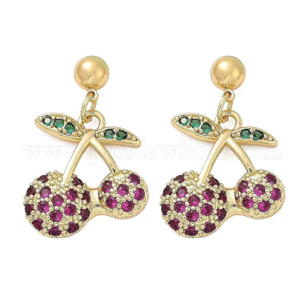 • Настоящее золото 18K Латунные кубического циркония серьги болтаться, вишня, реальный 18 k позолоченный, 32x20.5 мм