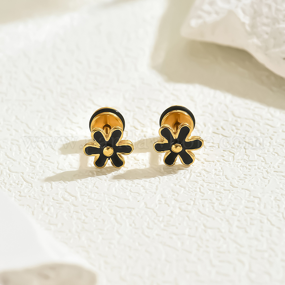 201 серьги-гвоздики с эмалированными цветами из нержавеющей стали