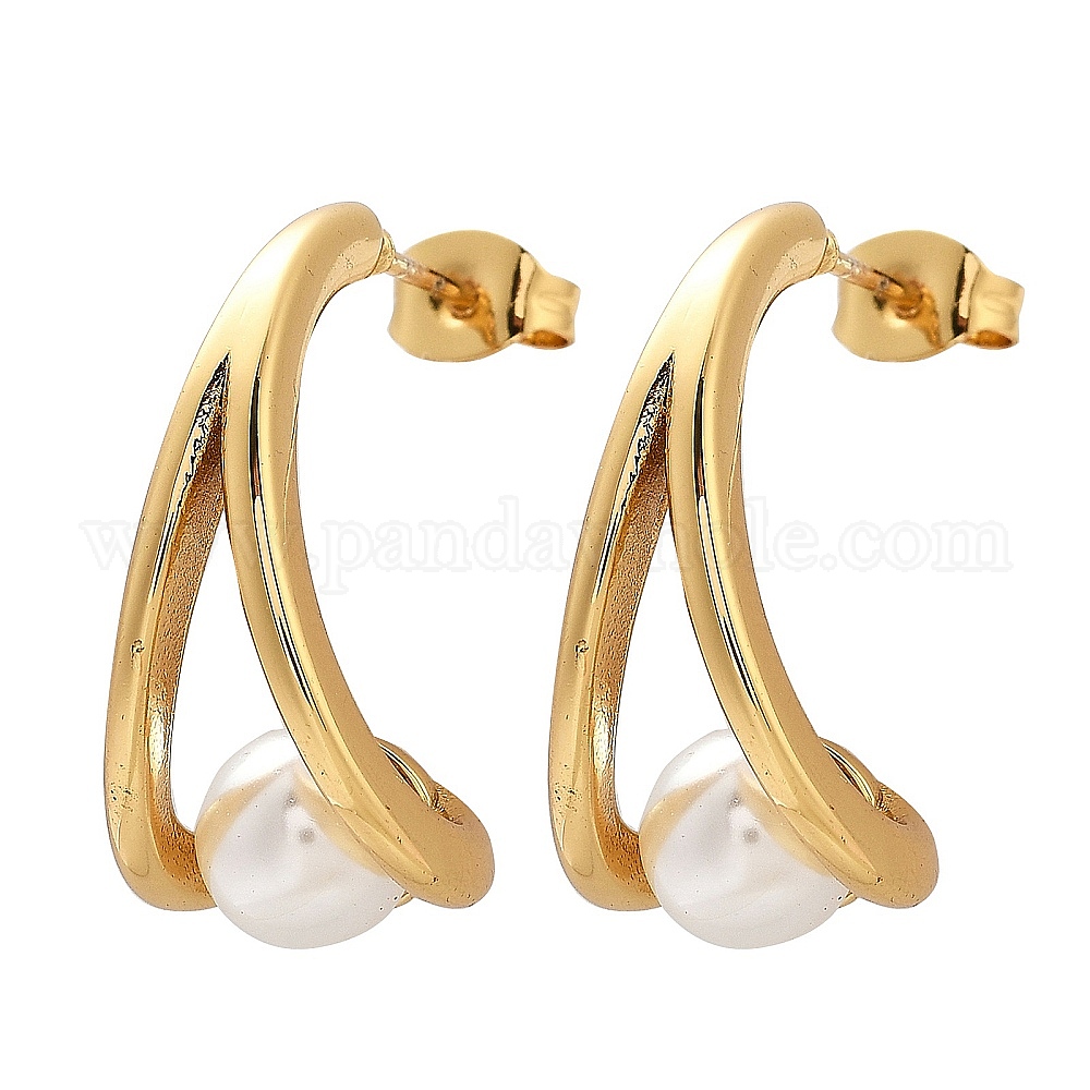 • Золотой 304 круглые серьги-гвоздики из нержавеющей стали с пластиковым искусственным жемчугом, золотые, 23x11 мм