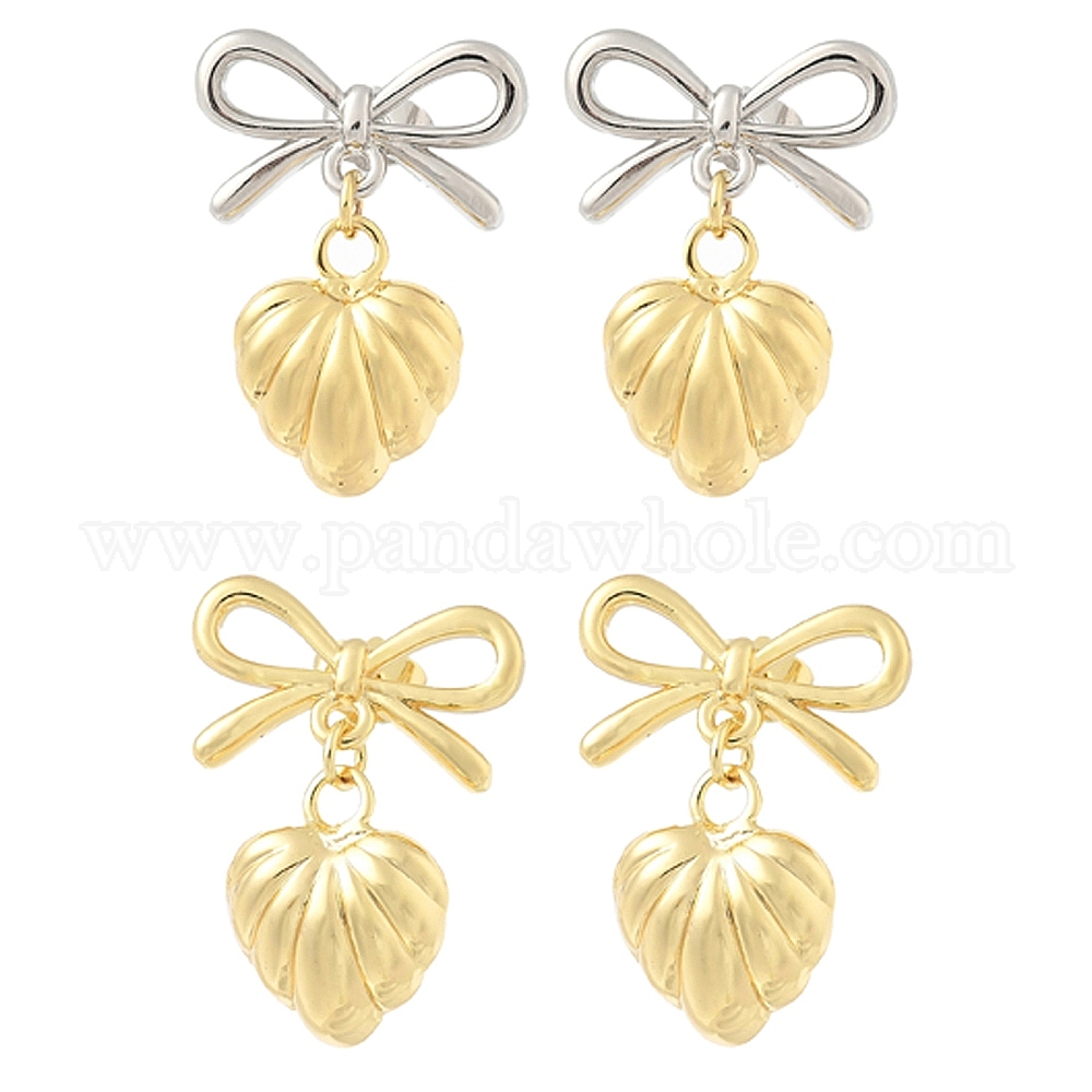• Платиновый & Золотой Двухцветные латунные серьги-гвоздики с подвесками, бантом с сердцем, платиной и золотом, 30x22 мм