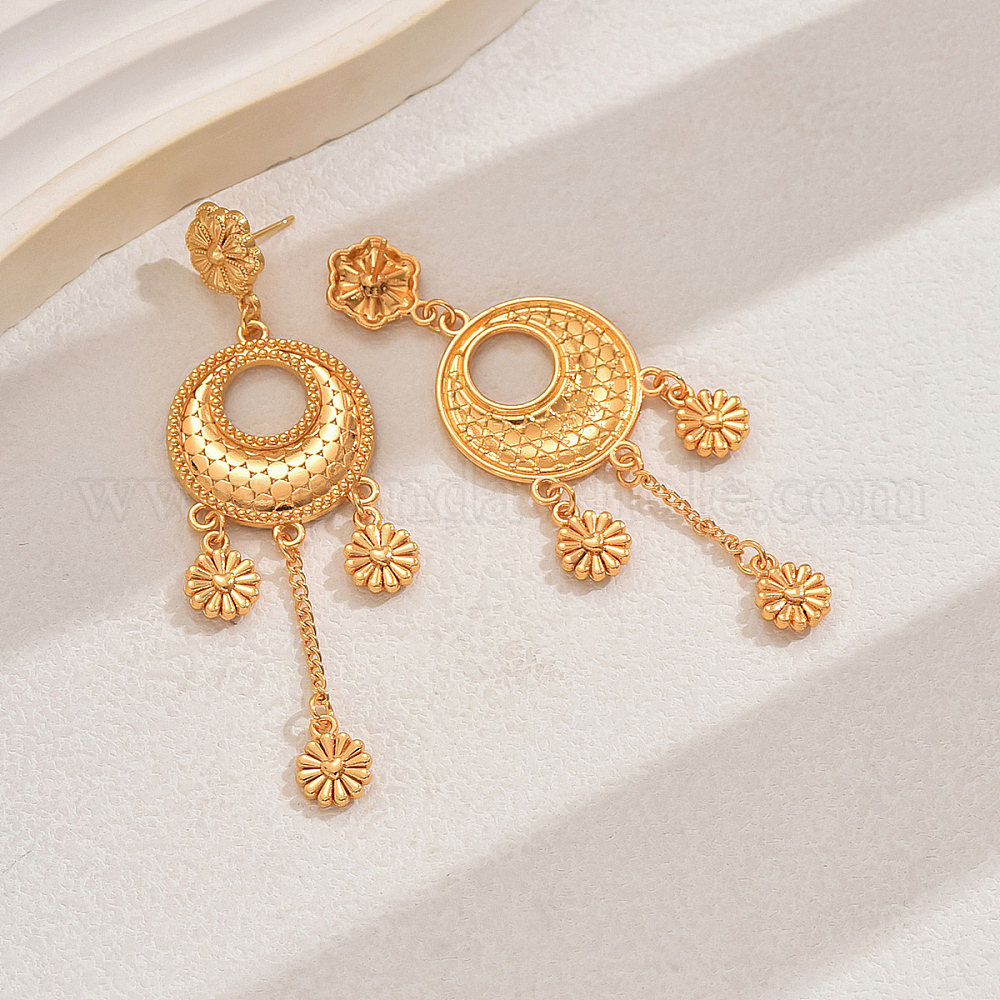 Плоские круглые серьги-гвоздики из сплава с цветком