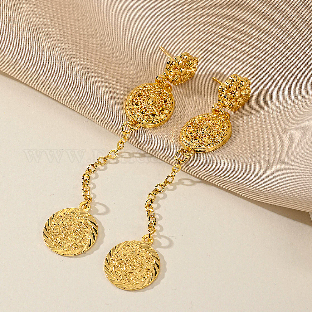 • Золотой Полые серьги-гвоздики с кисточками из латуни в форме цветка, золотые, 92x16 мм