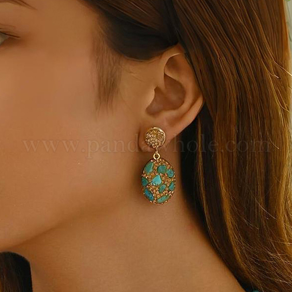 • Золотой Винтажные серьги-гвоздики из натуральной бирюзы, золотые, 45x20 мм