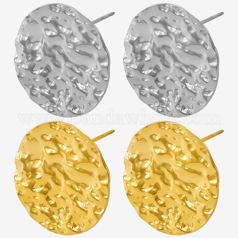 Элегантные плоские круглые 304 серьги-гвоздики из нержавеющей стали, сложить очарование