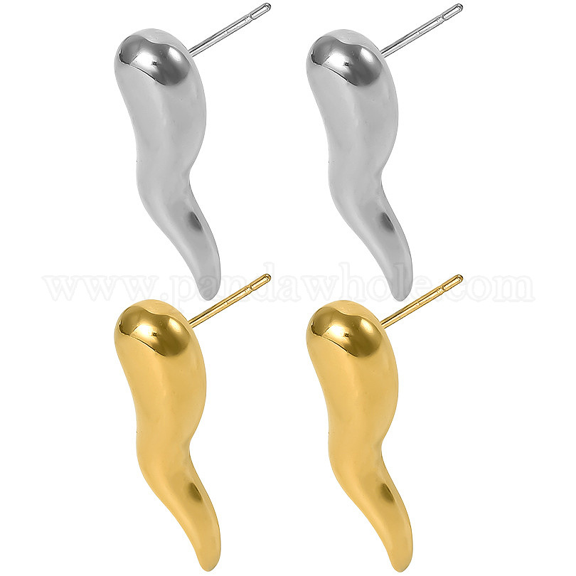 • Настоящее золото 18K Чили 304 серьги-гвоздики из нержавеющей стали, реальный 18 k позолоченный, 28x7 мм