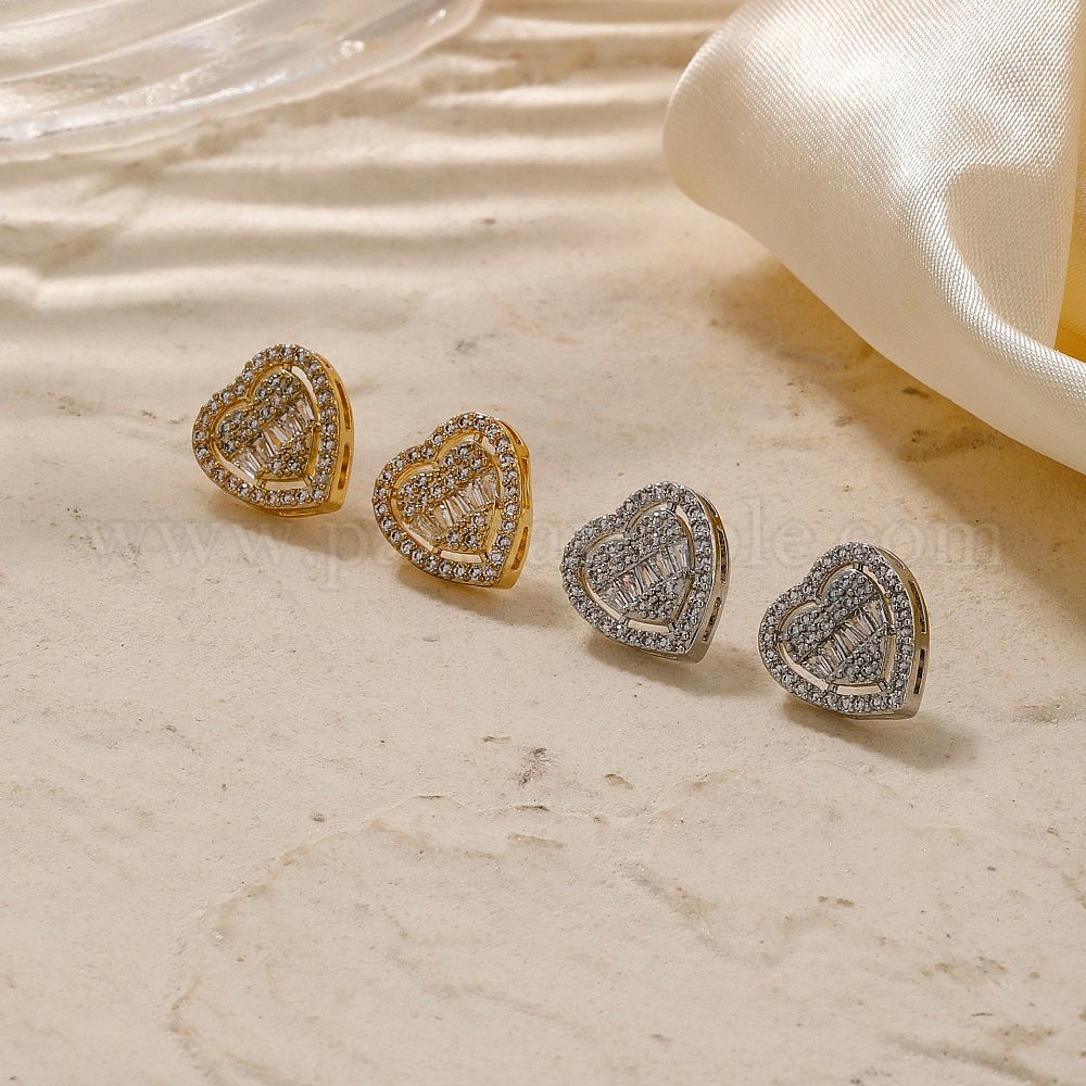 Элегантные серьги-гвоздики в форме сердца из латуни с прозрачным кубическим цирконием