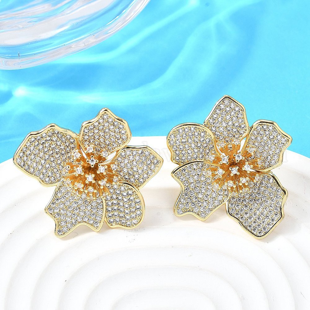 Серьги-гвоздики в форме цветка из латуни с прозрачным кубическим цирконием, без кадмия и без свинца, стойки покрытие