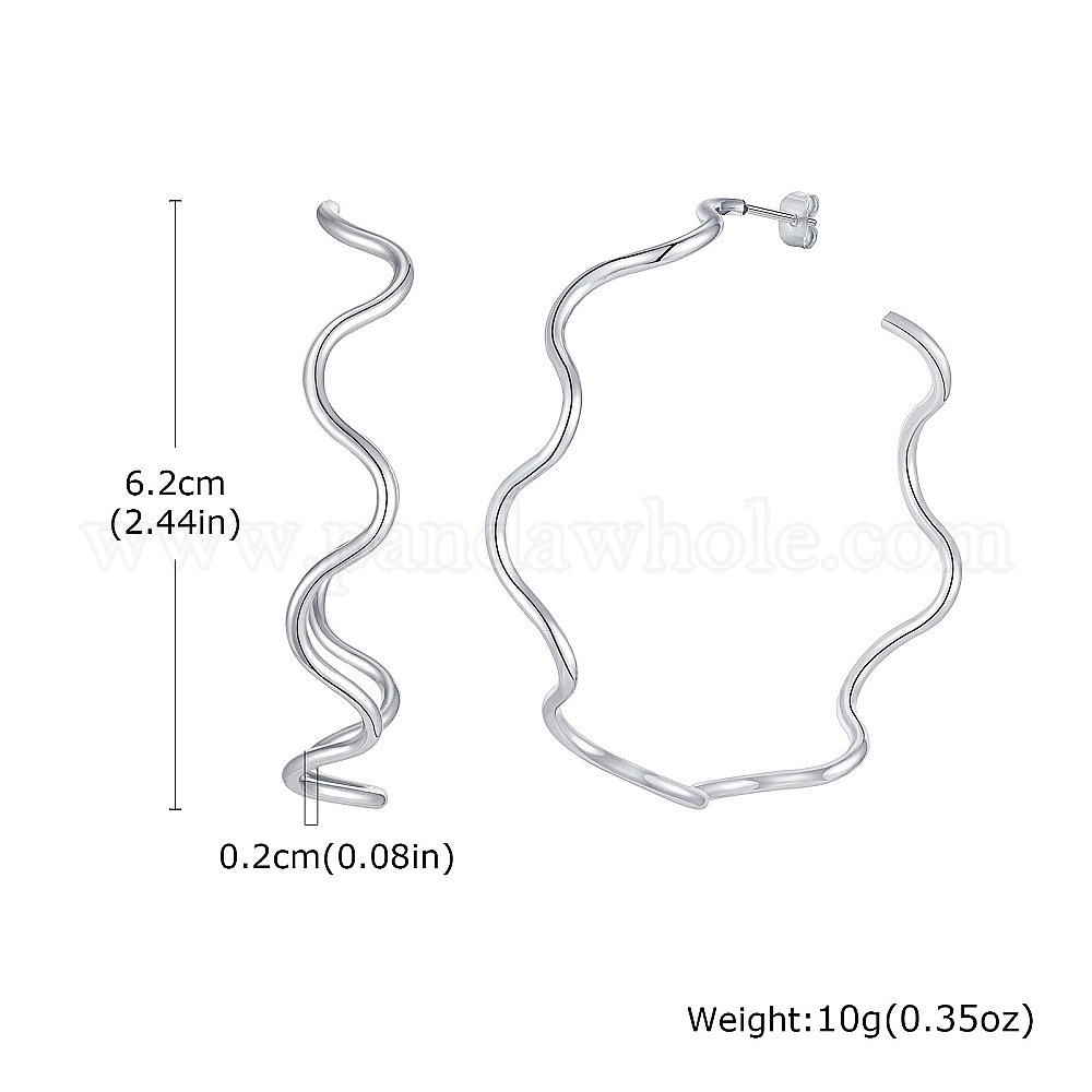 • Нержавеющая Сталь Цвет Волнистые 304 серьги-гвоздики из нержавеющей стали, цвет нержавеющей стали, 62 мм