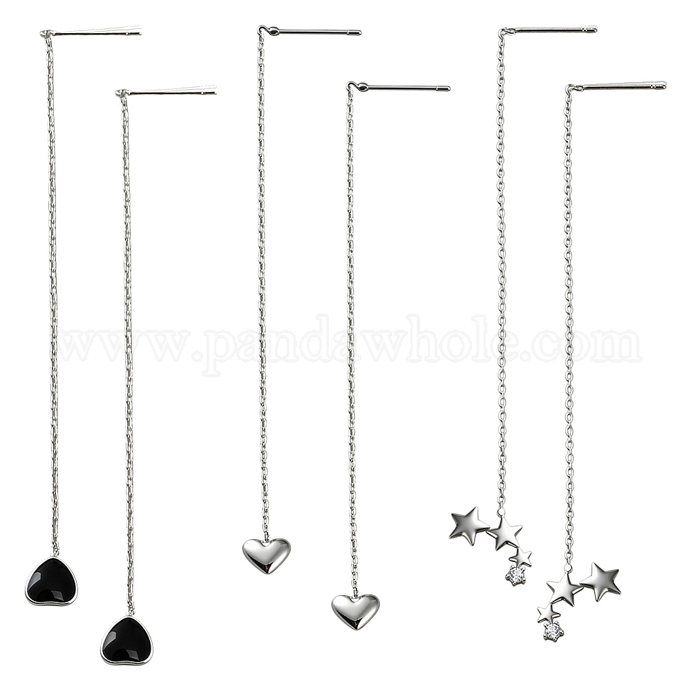 3пары 3стили латунные серьги-сердечки со стразами и звездами