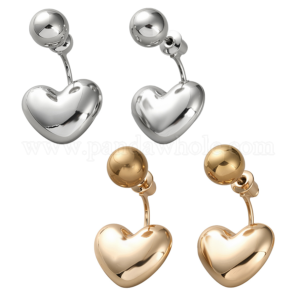 2 пары 2 цветные серьги-гвоздики из сплава, сердце