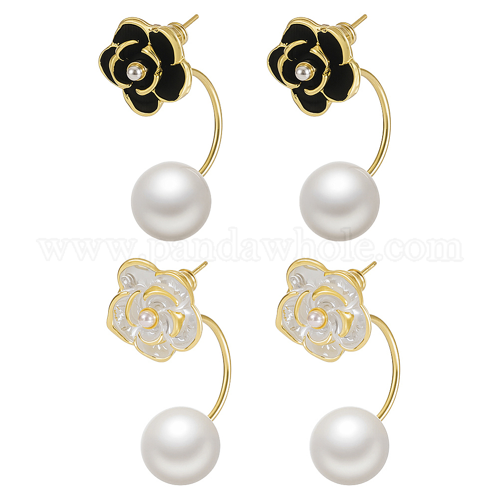 2 пары 2 серьги-гвоздики из цветочного сплава, с имитацией жемчуга, золотые
