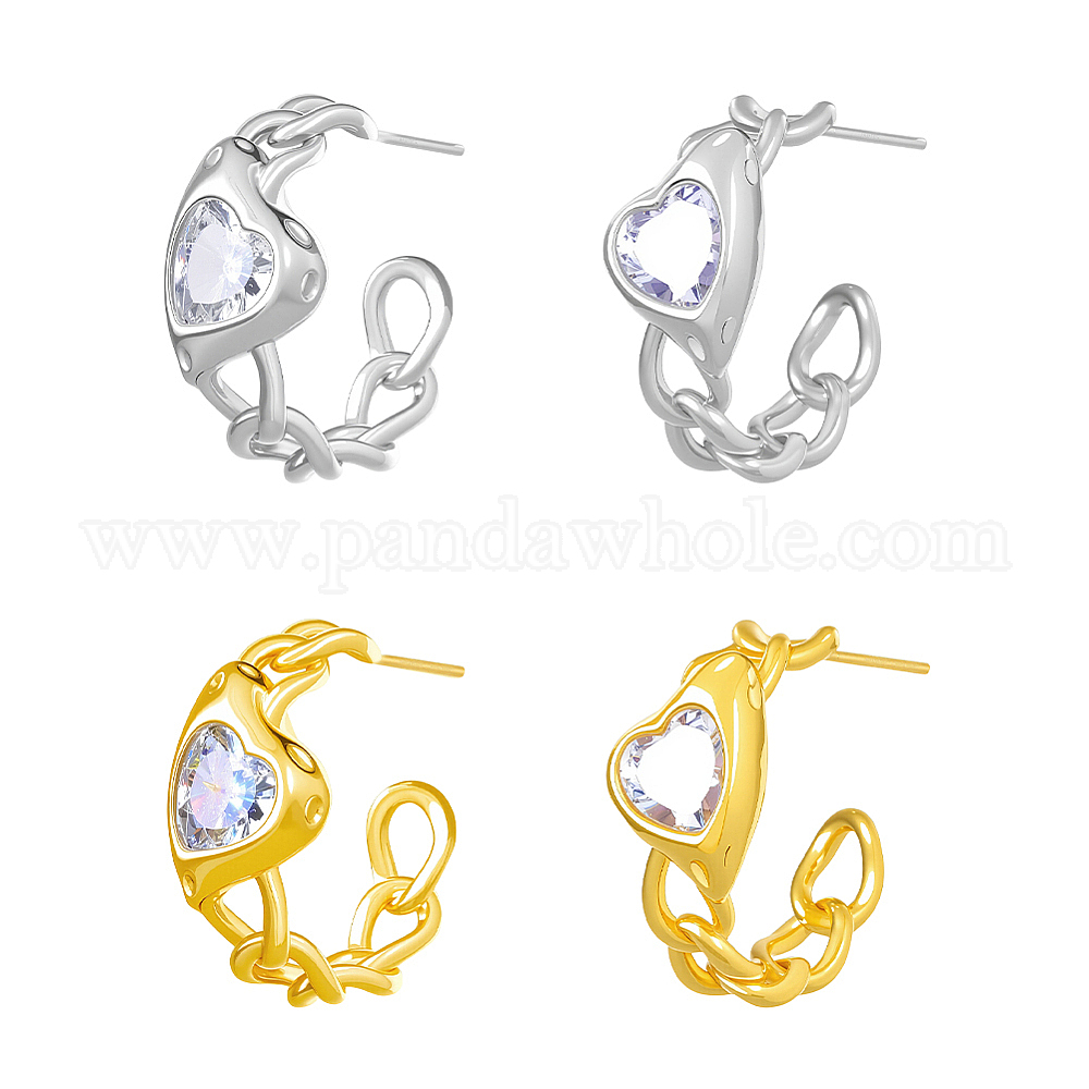 2 пары 2 серьги-гвоздики из цветного сплава со стразами, сердце