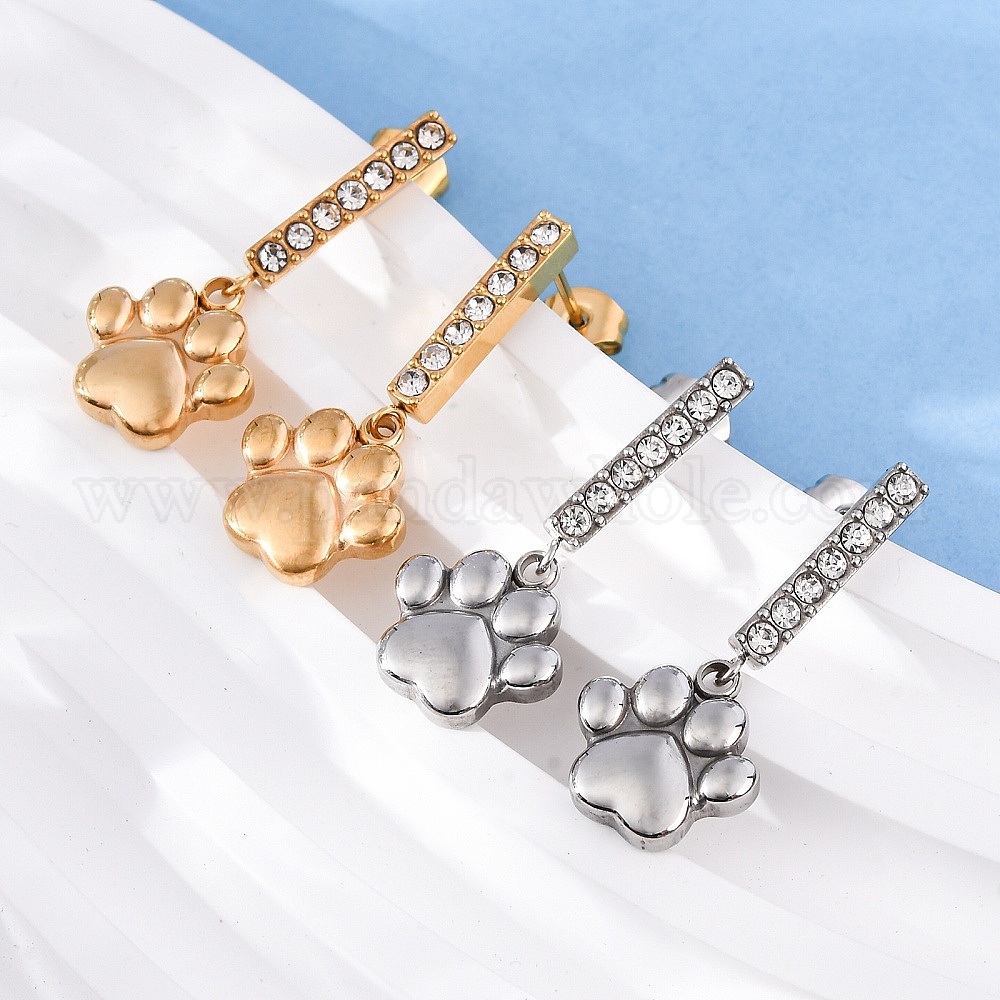 304 из нержавеющей стали болтаться серьги, со стразами, отпечаток лапы