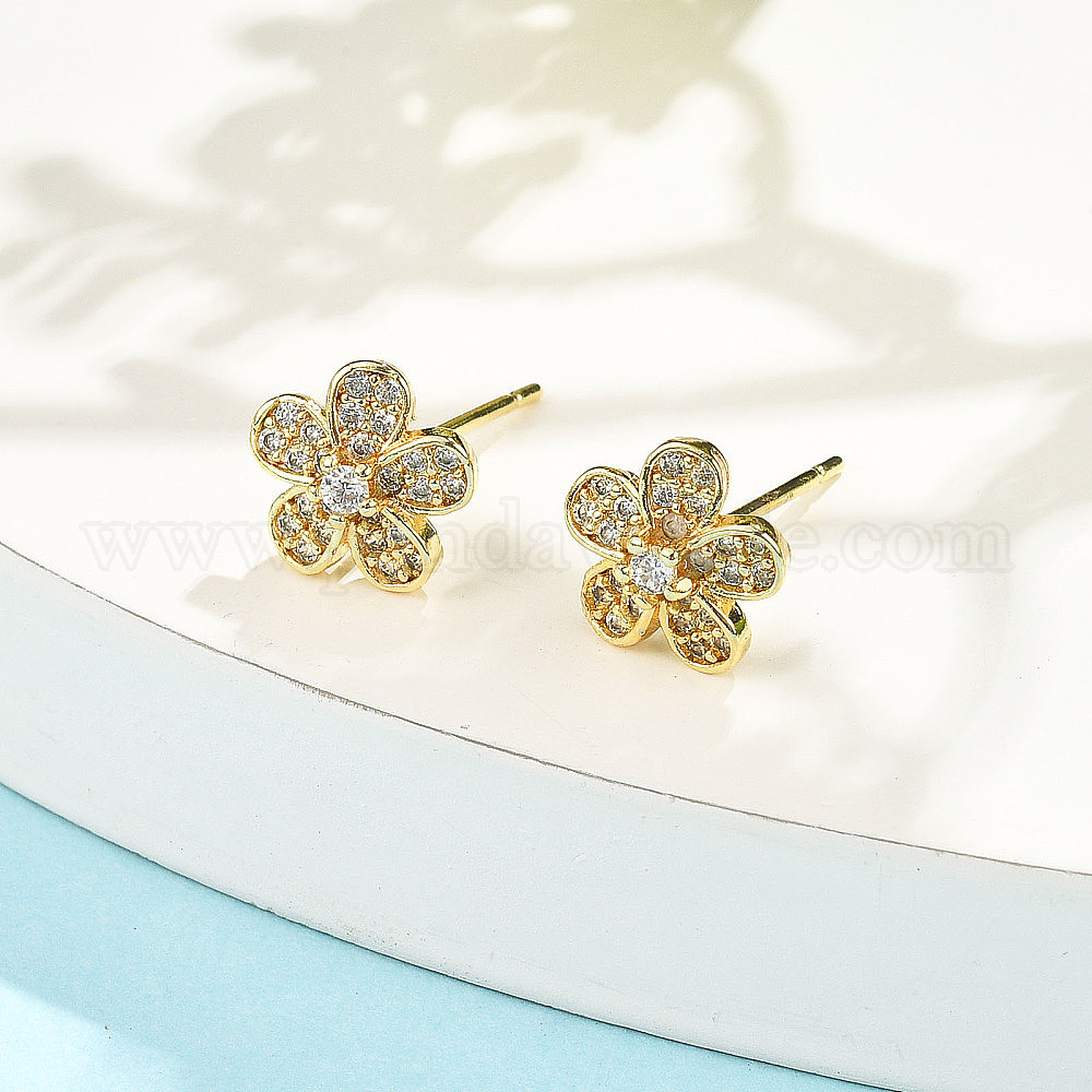 • Золотой Серьги-гвоздики из латуни с микро-паве и прозрачным фианитом, стойки покрытие, долговечный, без свинца и без кадмия, золотые, 8.5x8.5 мм