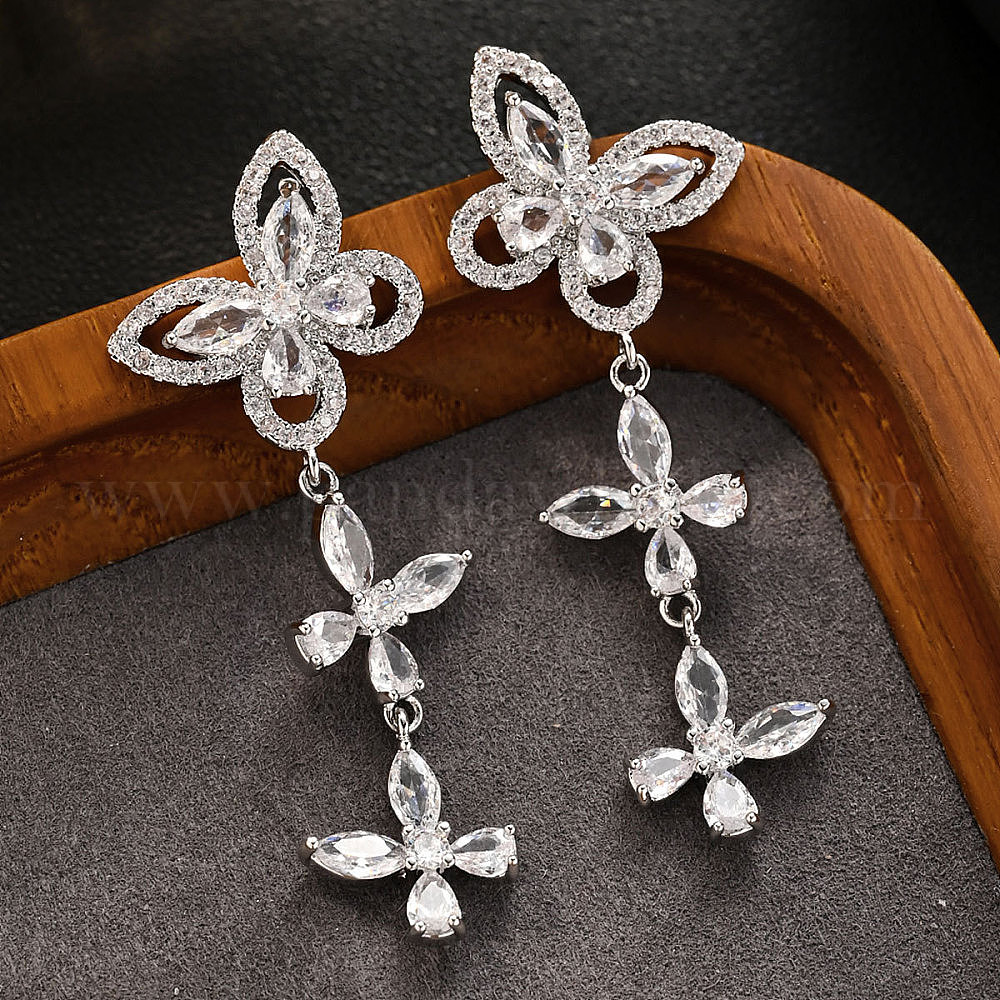 Серьги-гвоздики из латуни с прозрачным кубическим цирконием, бабочка