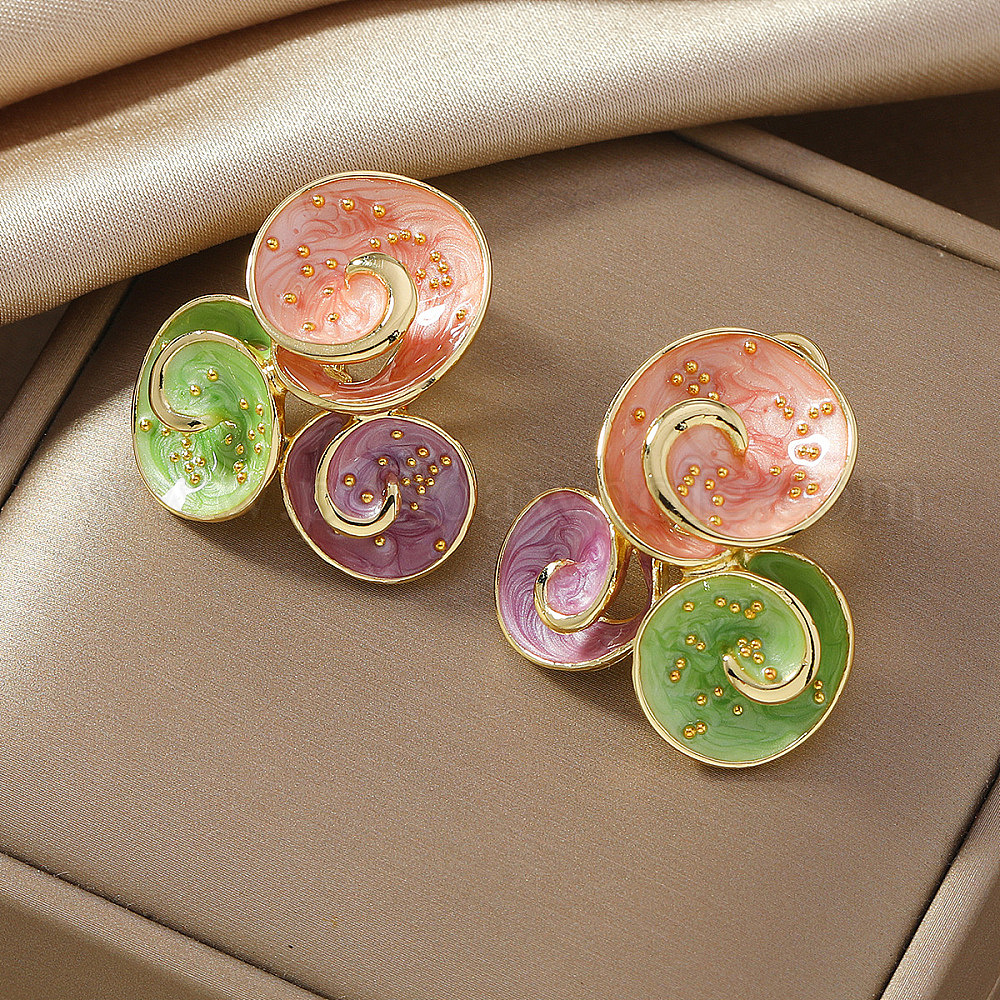 Сплав эмаль серьги, синтетические бирюзовые, золотые (034YC4)