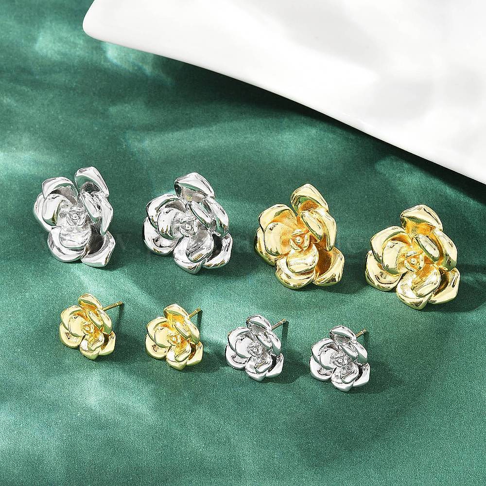 Латунь серьги, цветок, без кадмия и без свинца, стойки покрытие, долговечный