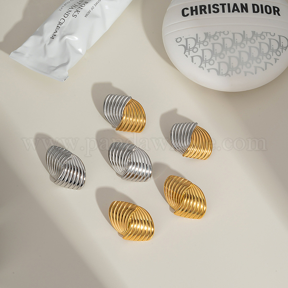 • Золотой & Серебряный Серьги-гвоздики из нержавеющей стали с перекрестными полосками, золотой и серебряный, 28x19.7 мм