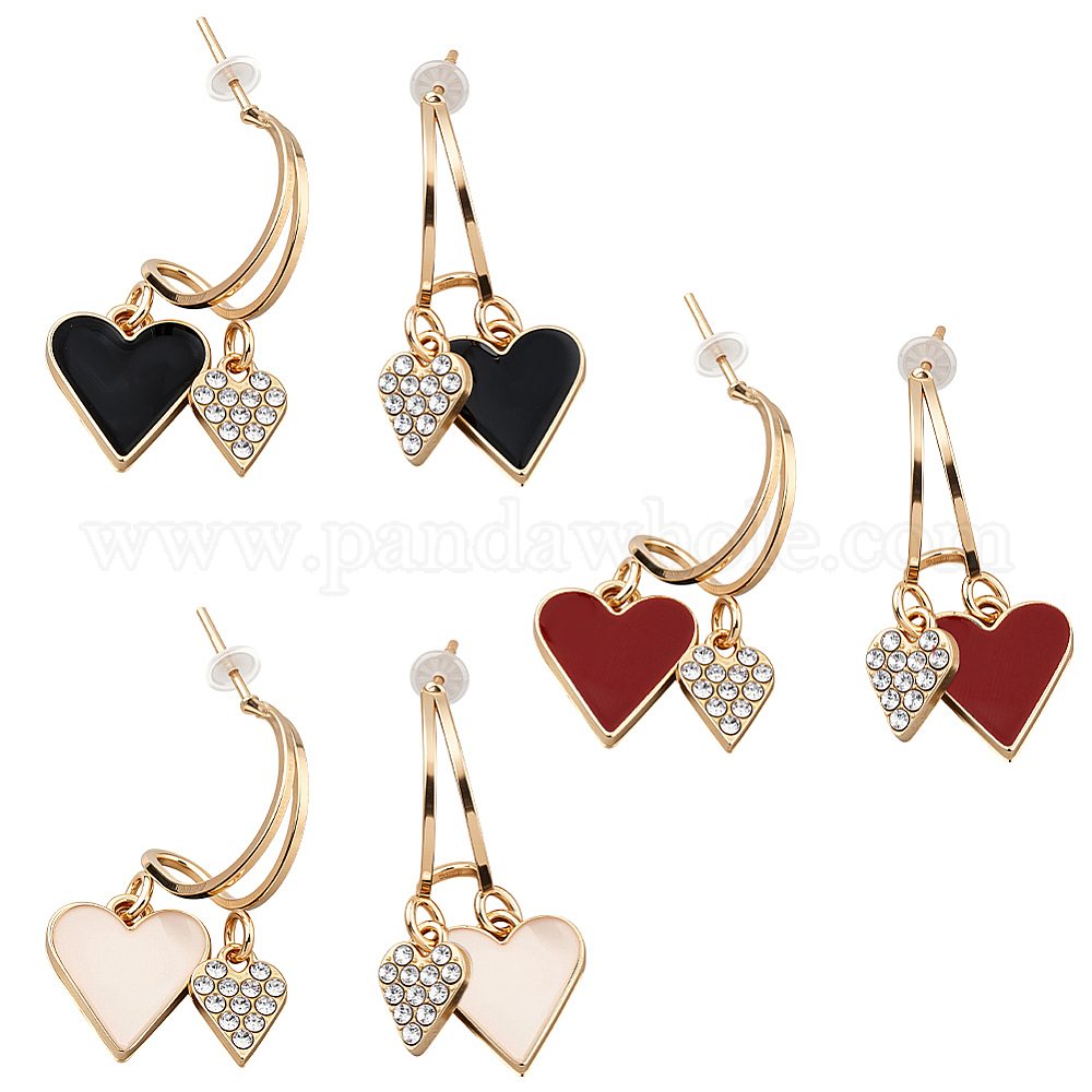 3 пары 3 цветные серьги-гвоздики из сплава со стразами, сердце