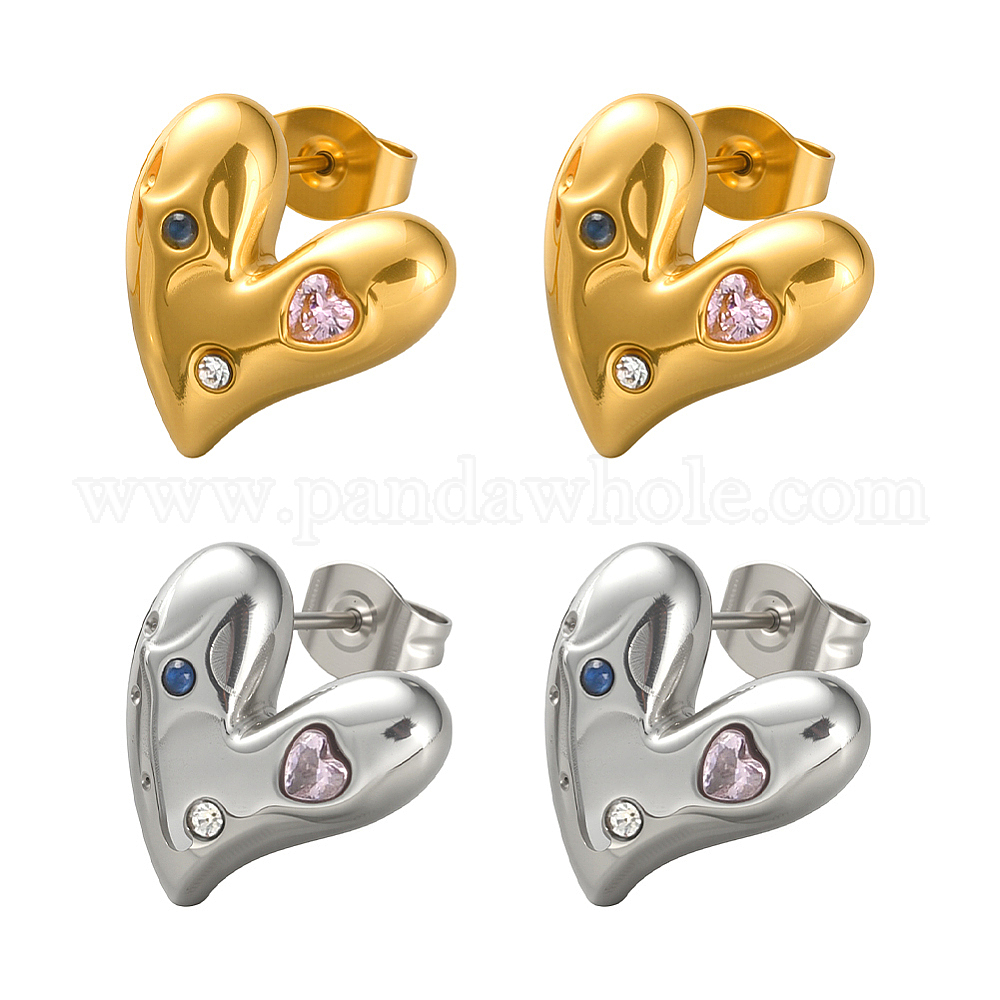 2 пары 2 цвета серьги-гвоздики в форме сердца из нержавеющей стали, с кубического циркония