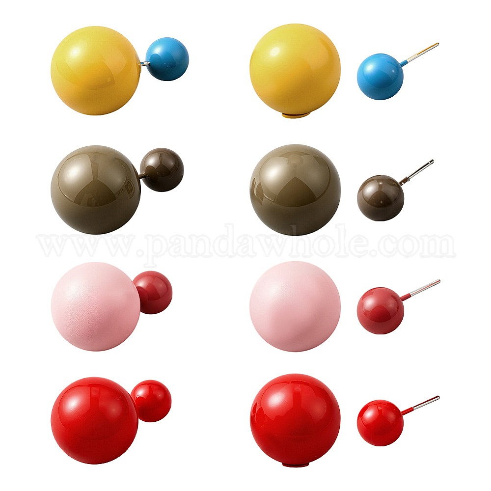 4 пары 4 цветные пластиковые круглые серьги-гвоздики, мяч серьги, платина