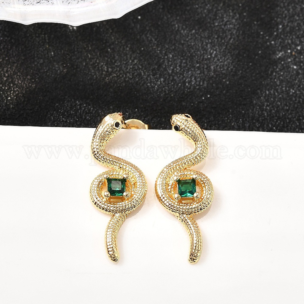 Серьги-гвоздики из латуни с микропаве из кубического циркония в форме змеи, без кадмия и без свинца (035962)