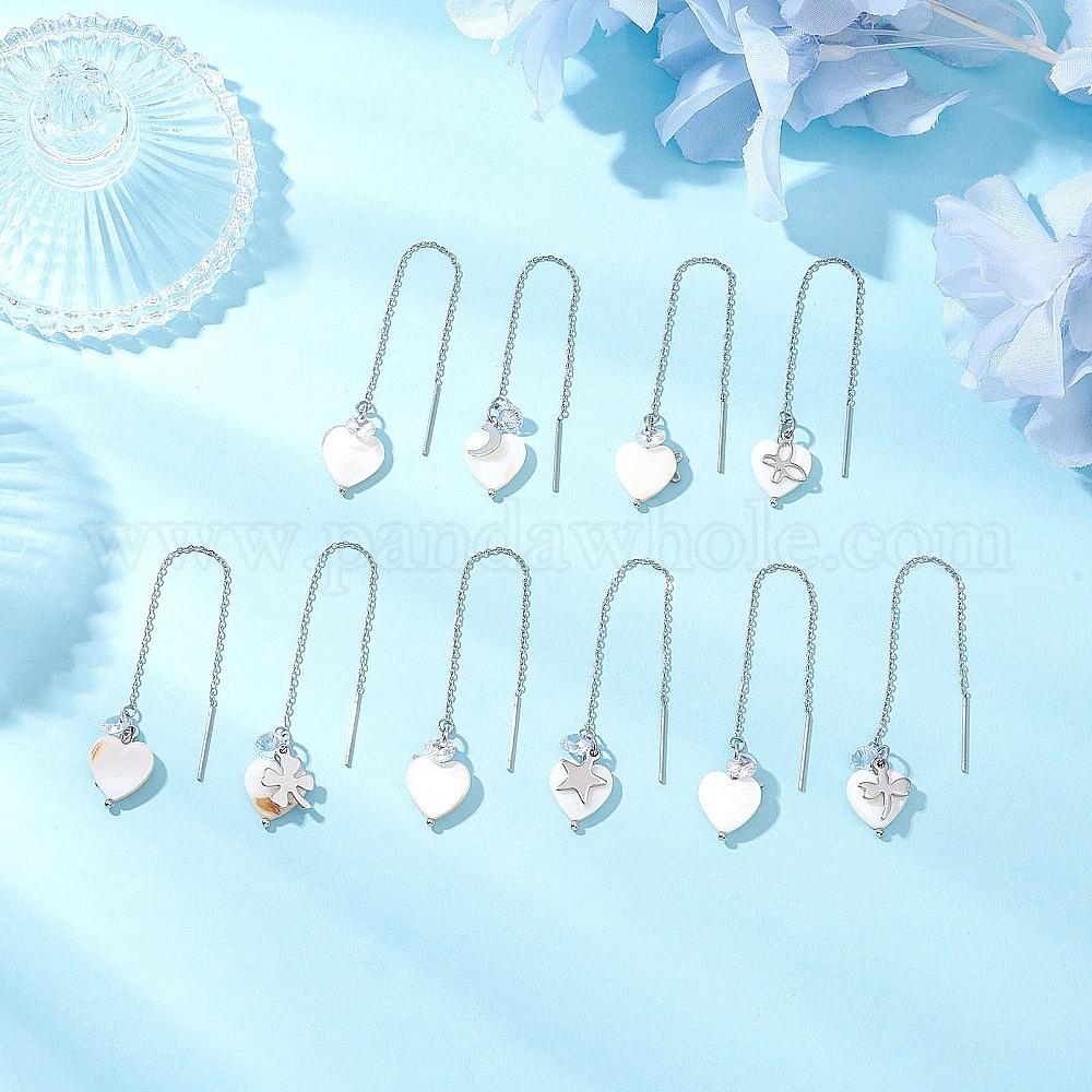 5 пары натуральных пресноводных ракушек, ухо, нить, сердце, с 304 нержавеющей сталью и 201 нержавеющей сталью