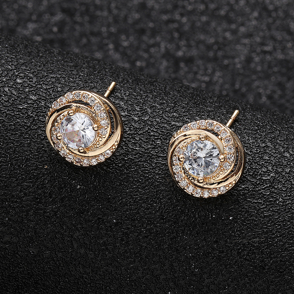 Серьги-гвоздики из латуни с микропаве из прозрачного кубического циркония Vortex Spiral