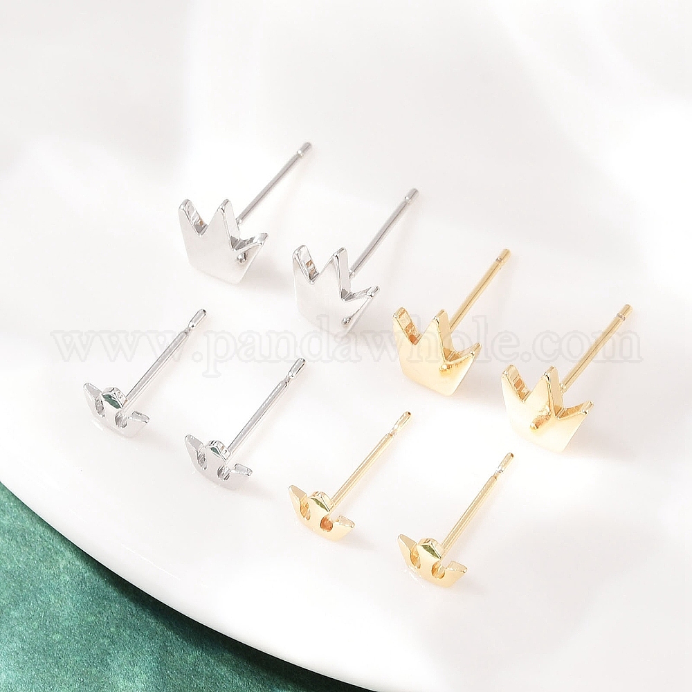 • Платинированный Латунные серьги-гвоздики для женщин, корона, Реальная платина, 5x6.5 мм