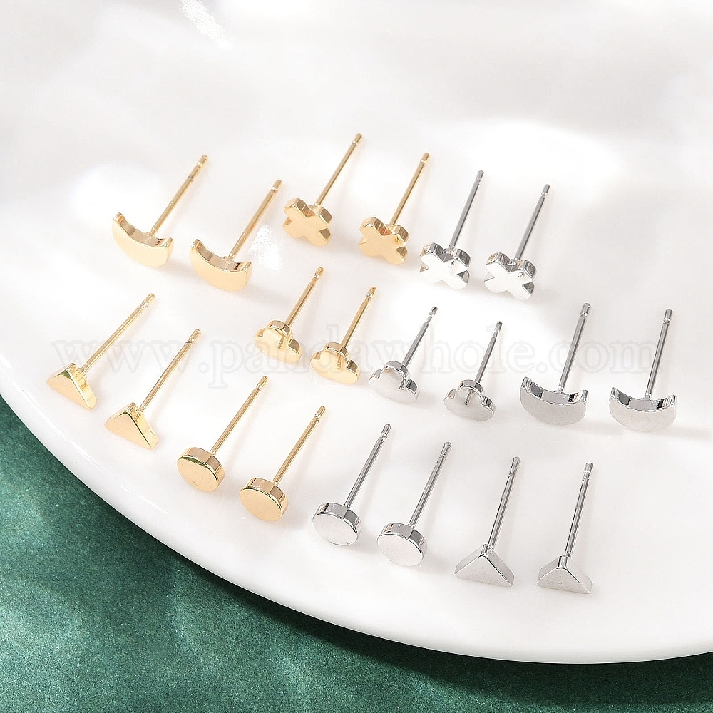 • Платинированный Серьги-гвоздики в форме луны из латуни для женщин, Реальная платина, 7x5.5 мм
