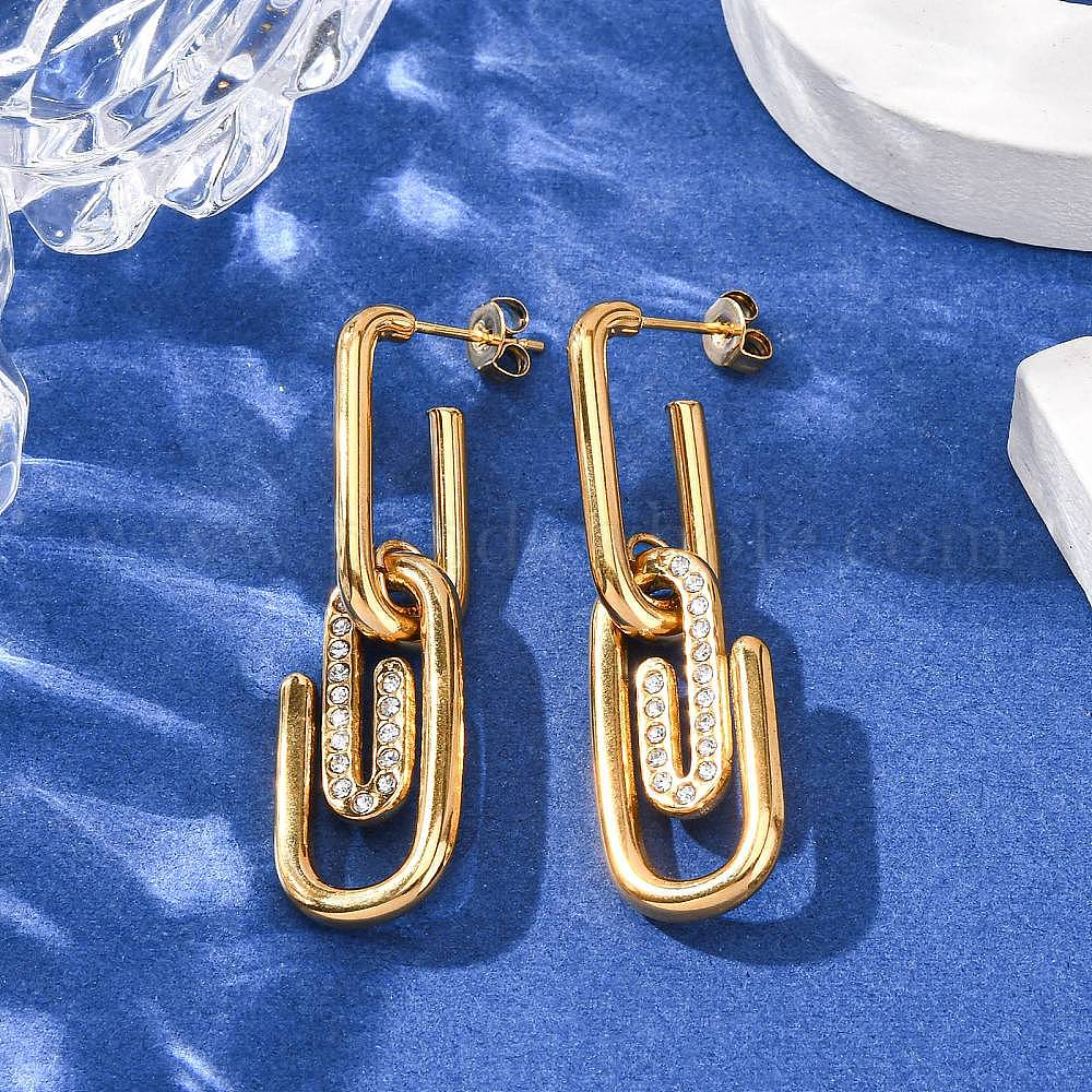 304 серьги-гвоздики в виде скрепки из нержавеющей стали, со стразами