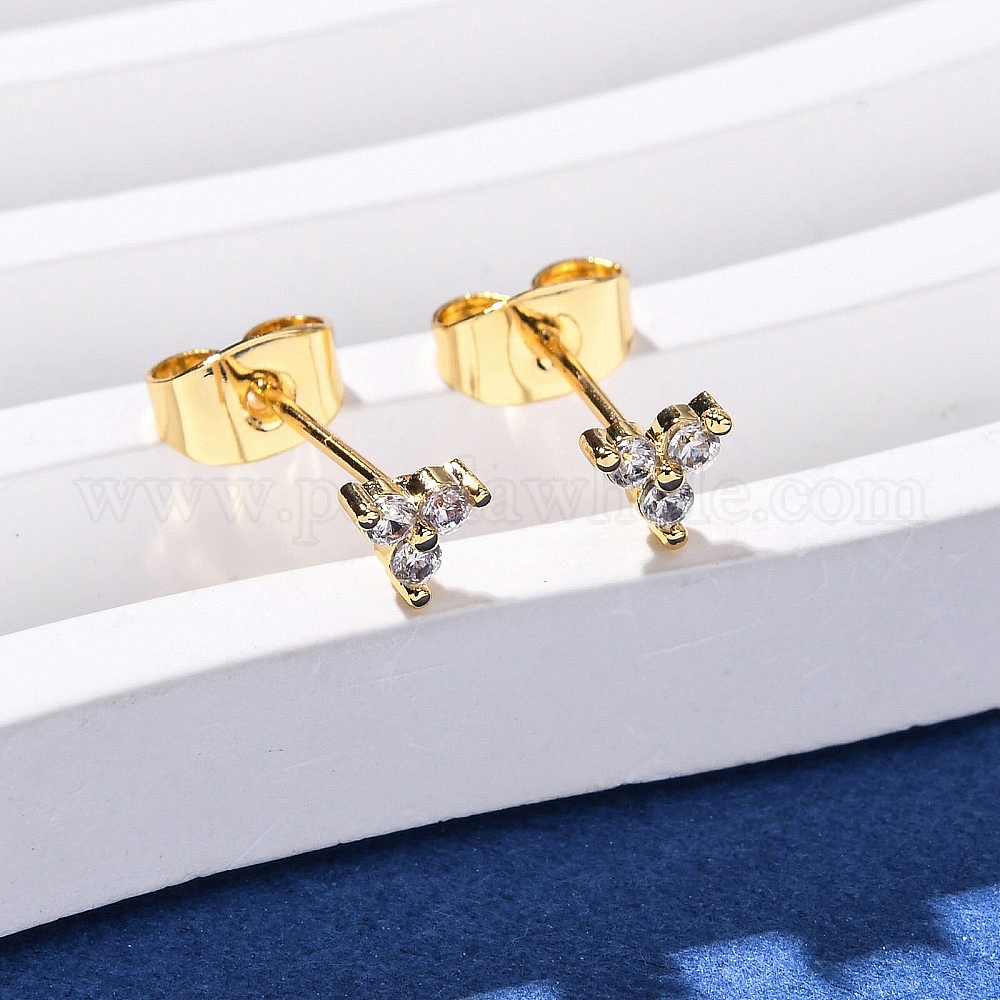 Серьги-гвоздики в форме клевера с микропаве из прозрачных кубических цирконий из латуни