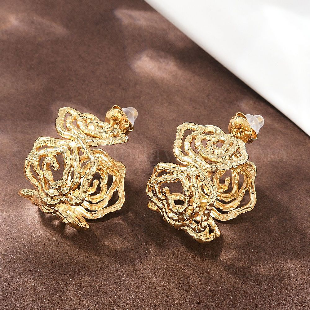 304 серьги-гвоздики из нержавеющей стали с полыми цветами