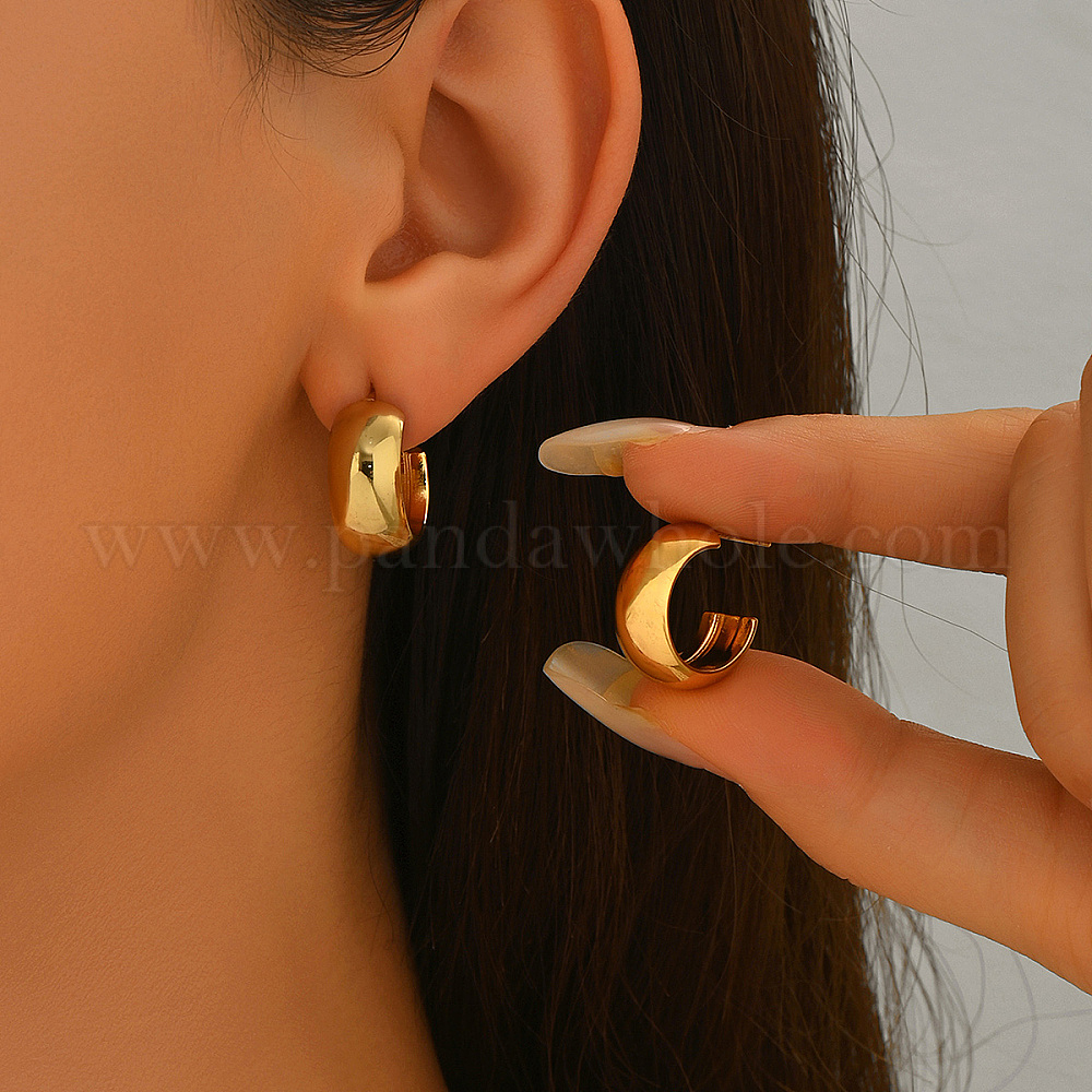 • Золотой Простые серьги-гвоздики из нержавеющей стали в форме буквы С, золотые, 18x8 мм
