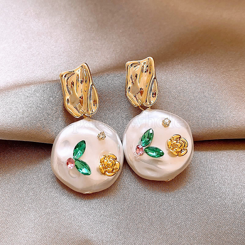 Литые эмаль болтаться серьги стержня, с пластиковой имитационной жемчужиной, плоско-круглые
